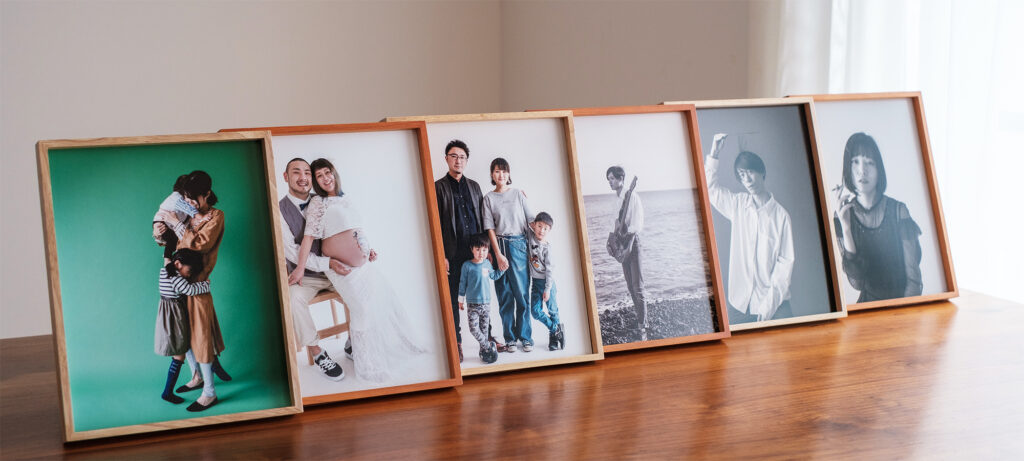 プリントは、美術館で求められる品質、保存水準を満たした、最高品質のフォトペーパー(光沢バライタ調)を使用。最近では、写真を見返すときにスマートフォンやタブレットなどを使う方が多いことでしょう。しかし、目につきやすいリビングやダイニング、お部屋などにプリントされた写真を飾ることで、何気ない日常をより慈しめるようになります。ご自宅に写真を飾れば、空間の雰囲気ももっとステキになるはずです。